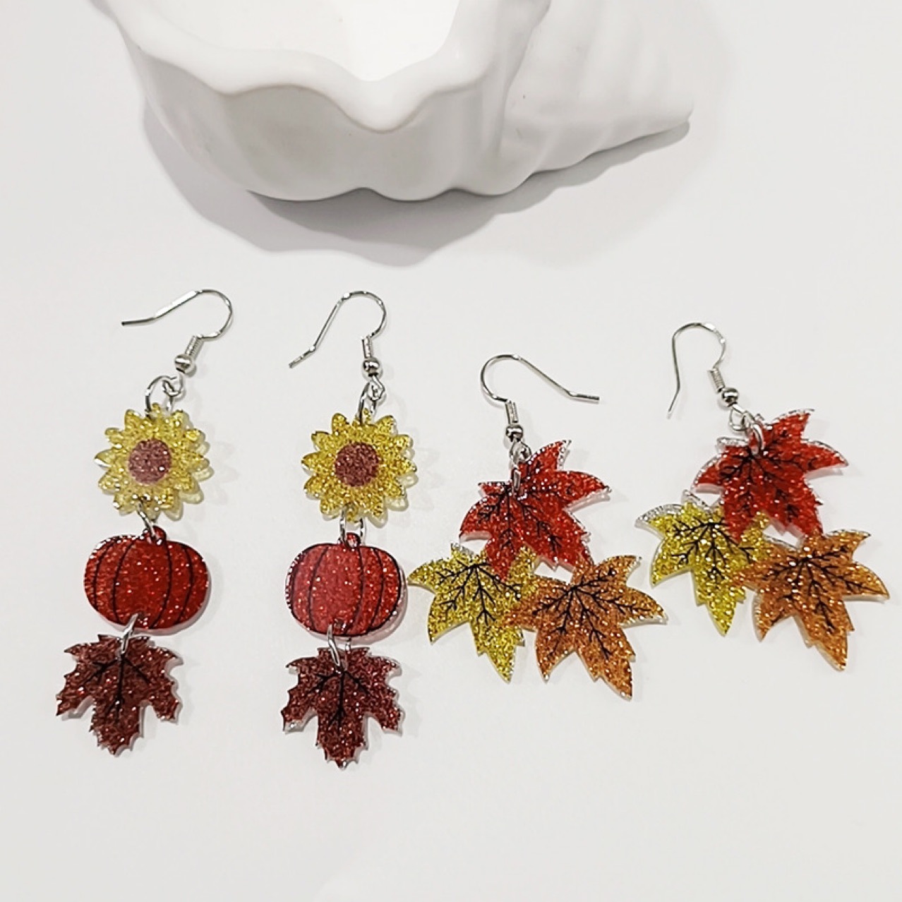 European and American Cross-Border New Autumn Thanksgiving Maple Leaf Earrings Double-Sided Wooden Earrings Forest Style Female Personalized Earrings Gift