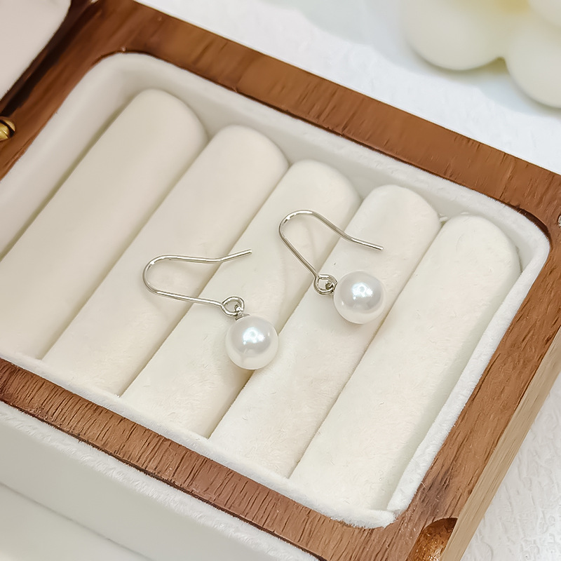Brand Silver Needle Thick Gold Color-Preserving Basic Simple Pearl Earrings Temperament Women's Commuting Slimming Earrings Ear Hooks