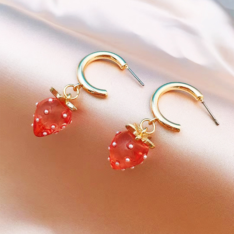 Earrings Strawberry Japanese and Korean Cute Simple Fashion Source Factory Original Design Joker Qingdao Foreign Trade Women's Earrings