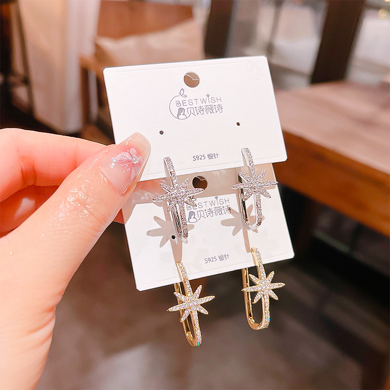 Real Gold electroplated zircon Star square ear buckle niche high-grade golden earrings simple all-match light luxury earrings for women