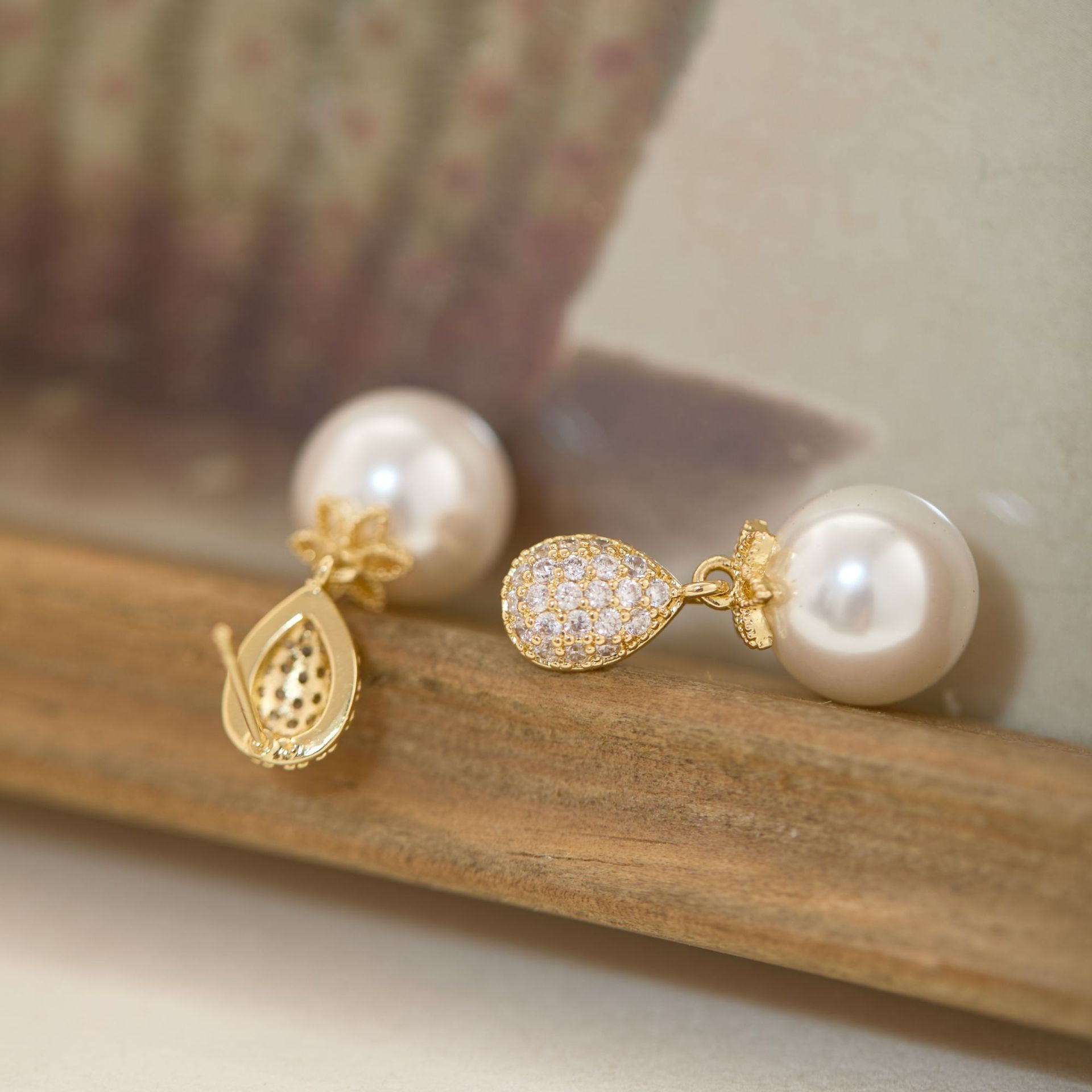 Tiktok-Style Water Drop Pearl Clip-On Earrings Without Piercings, Mosquito Coil Design, Copper Zircon Fashion Versatile Earrings, Light Luxury Earrings for Women