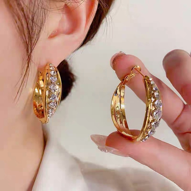 Fashion temperament full diamond ring earrings women 2024 new fashion light luxury Joker net red circle ear jewelry wholesale