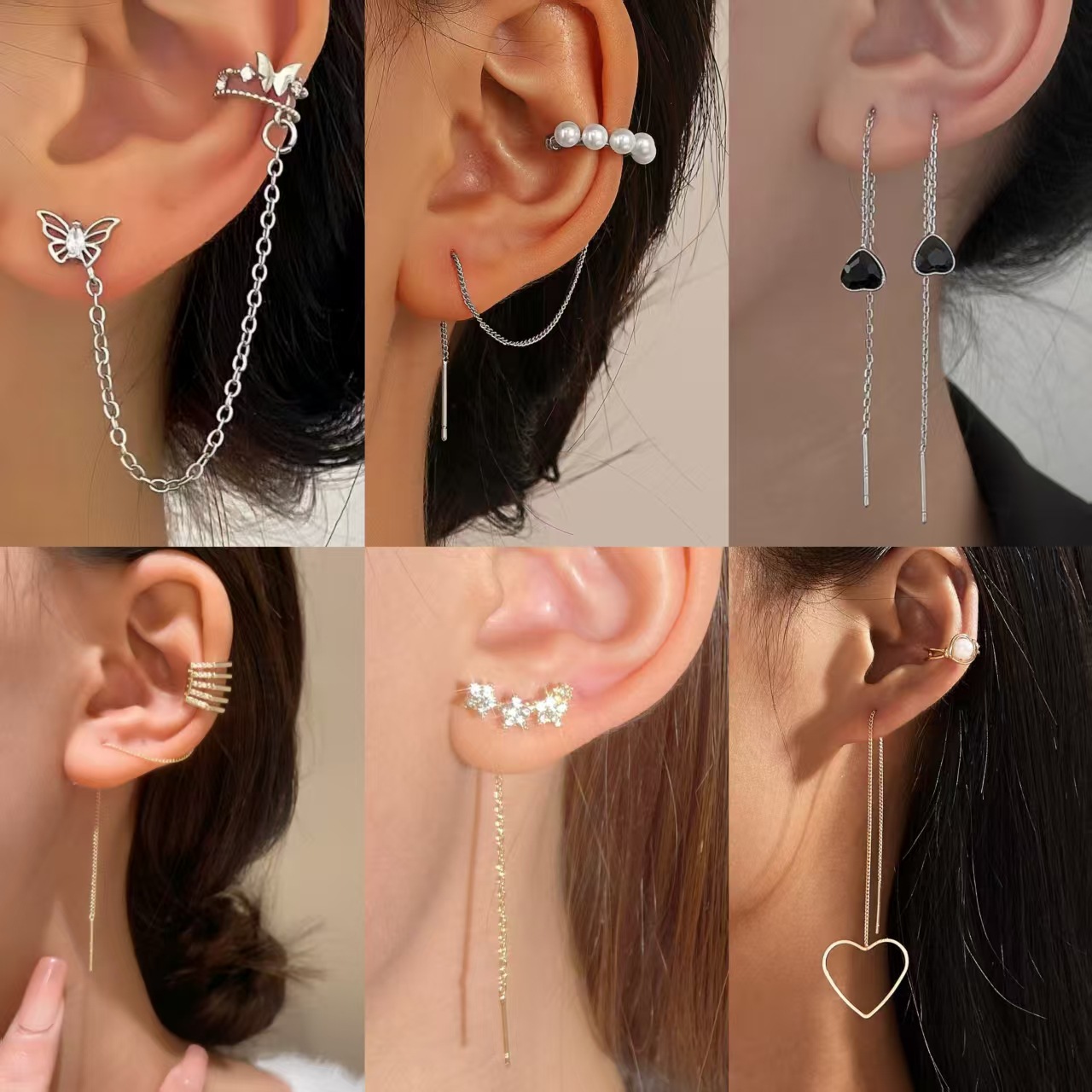 2022 Douyin New Casual Fashion Super Flash Diamond Butterfly Flower Women's No Piercing Tassel Earrings