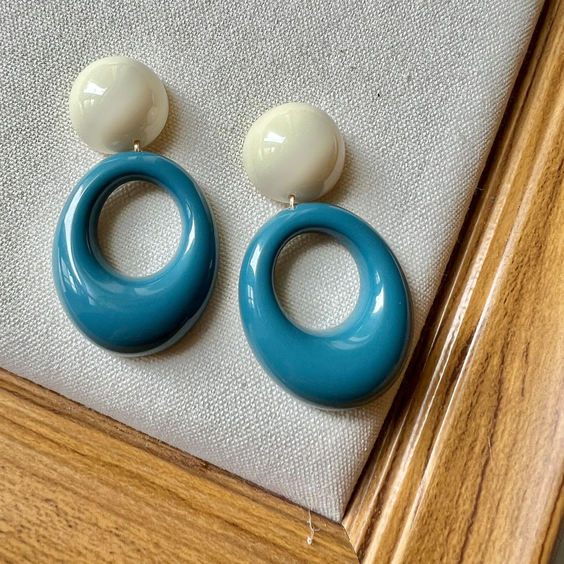 Japanese Modern Retro Age Sense Hong Kong Style Morandi Circle Prynne Contrast Color Resin Hong Kong Style Girl Earrings Earrings