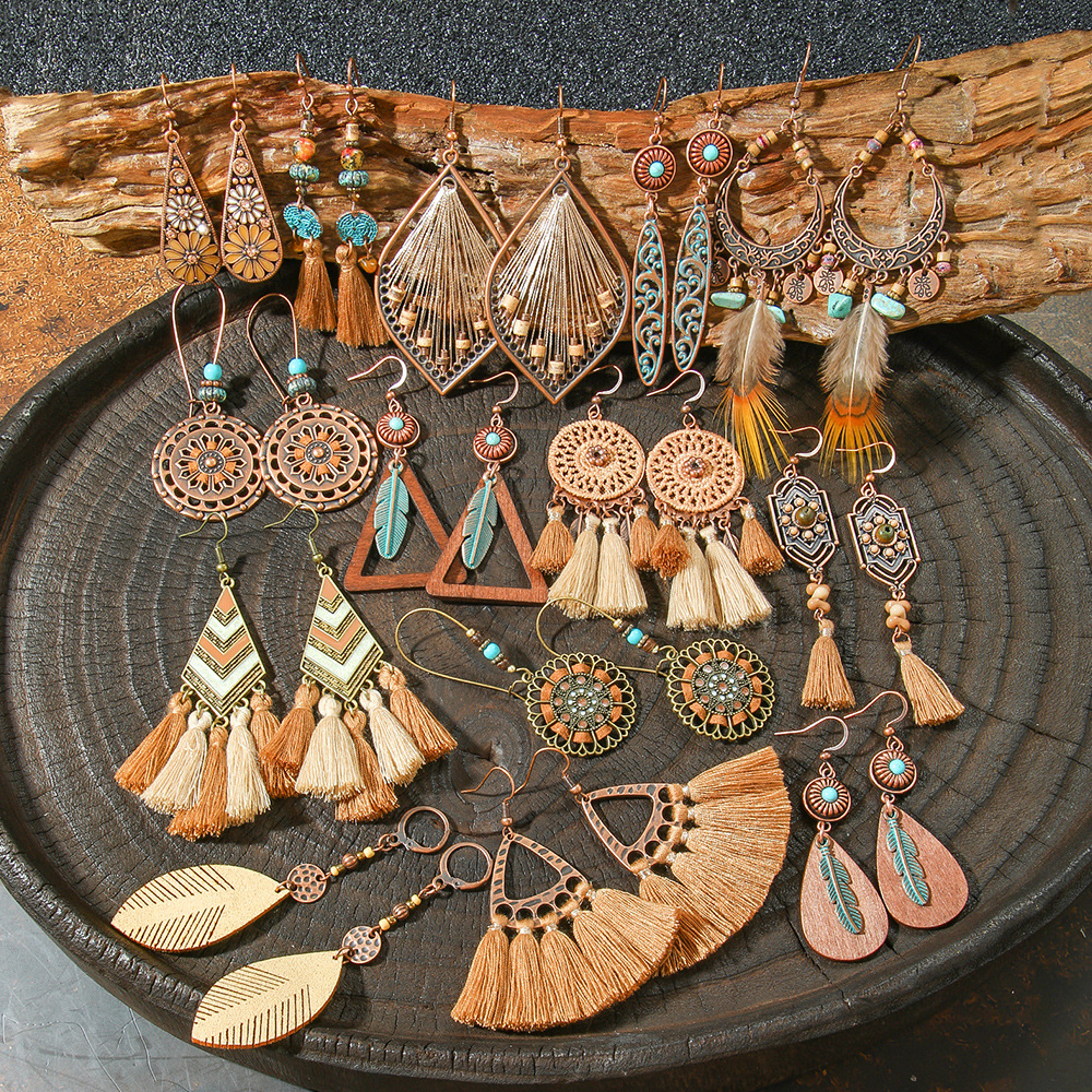 Explosive Retro Ethnic Style Earrings suit Women's Bohemian Elegant Tassel Earrings Geometric Personality Accessories Yiwu