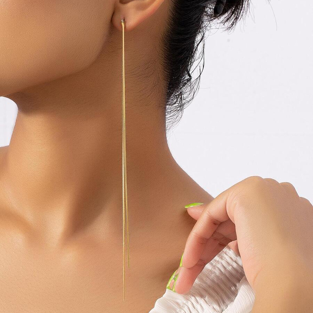 Stainless Steel Extra-Long Tassel Earrings for Women, Trendy Versatile Korean Style Minimalist Long Earrings Wholesale