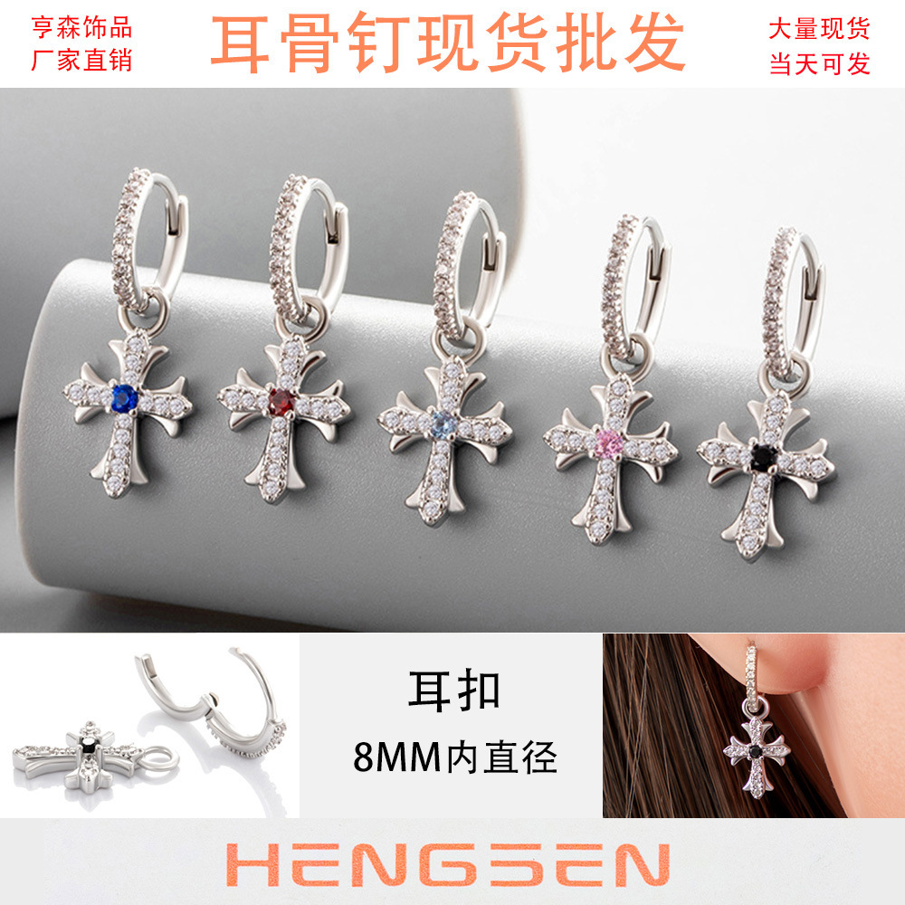 Henson Copper Inlaid Zircon Vintage Cross Pendant Earrings Earrings Sweet Girl Earrings Earrings