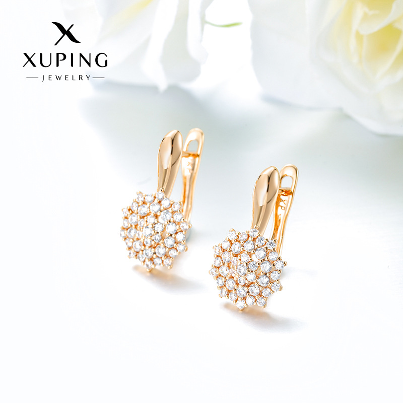 Xuping Fashionable Russian-Style D-Shaped Buckle Earrings Inlaid with Zircon, Niche and Elegant Ear Cuffs, Custom-Made for Women