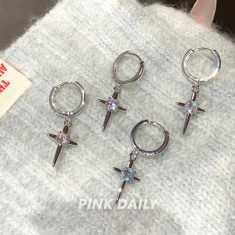 Mangxing Zircon Cross Pendant Ear Ring Women's Flash Diamond Advanced Sense Niche Ear Buckle All-match Earrings Earrings Female Elegant
