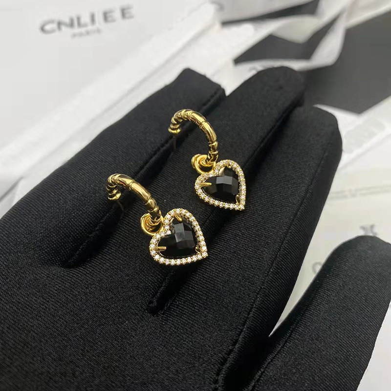 21ss Saijia's New European and American Niche Design Personalized Black Agate Heart Earrings Star Same Style Fashionable and Versatile for Women