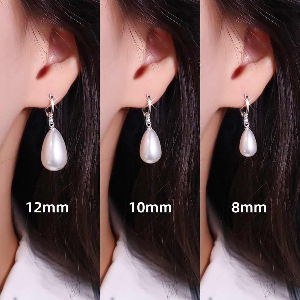 Water Drop Pearl Ear Buckle French Fashion Socialite Style Ear Ring Women's Simple Multi-Size Baroque White Bead Earrings