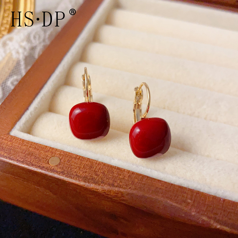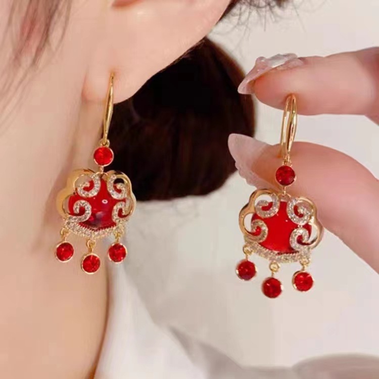 Lucky Cloud red safety Long Life Lock earrings female niche design earrings 2023 new ear hook high-grade earrings