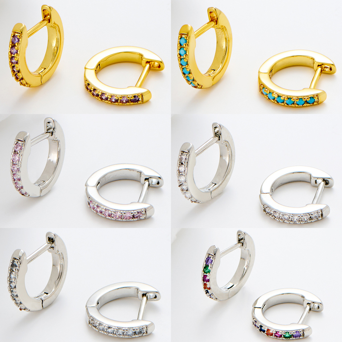 Colorful Zircon Earrings with Straight Pins, Small, Exquisite, Light, Luxurious and High-End Korean Style Copper Hoop Earrings for Women, Simple Earrings