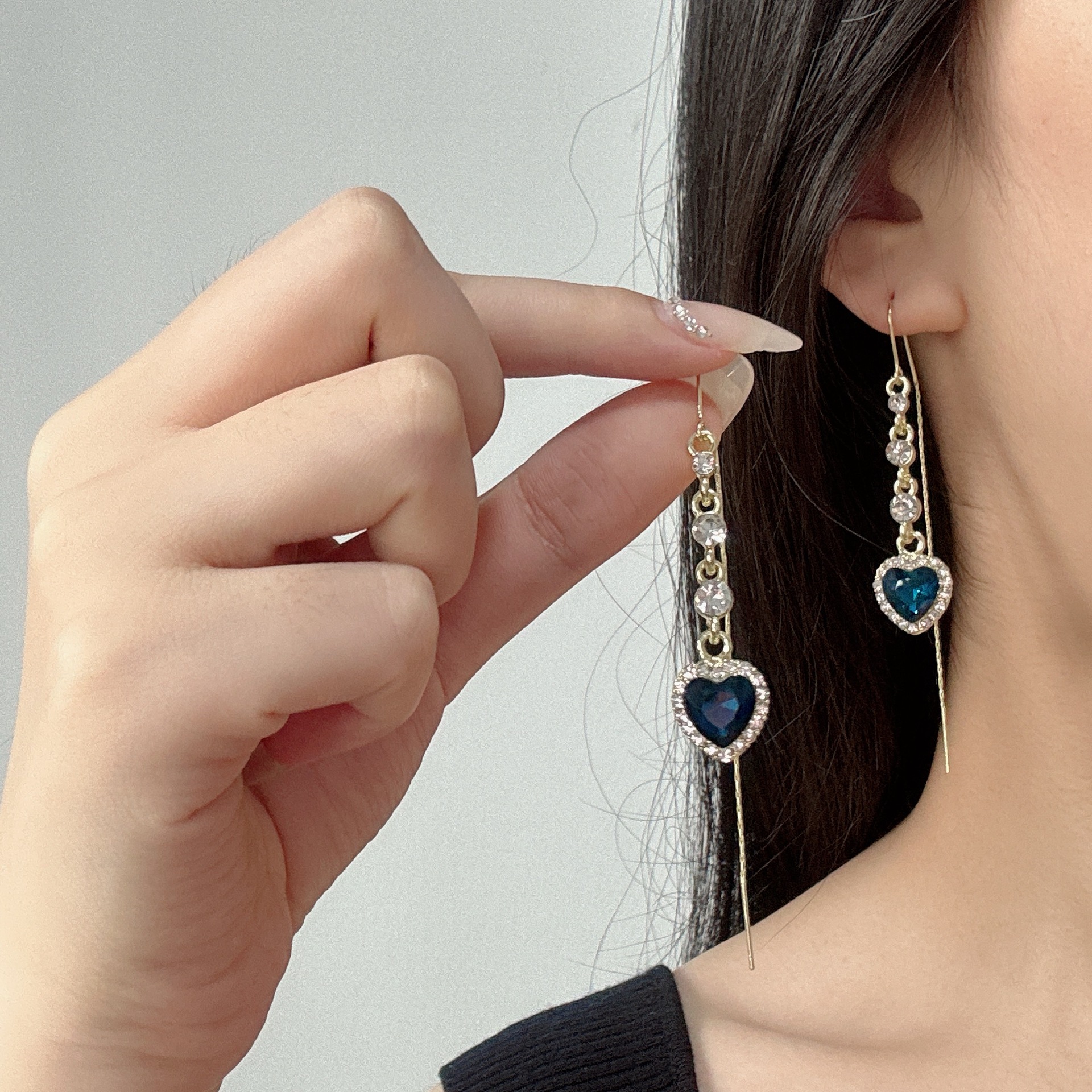 Popular Heart-to-Heart Blue Crystal Love Ear Line Women's Korean-style All-match Light Luxury High-end Diamond-studded Exquisite Ear Accessories