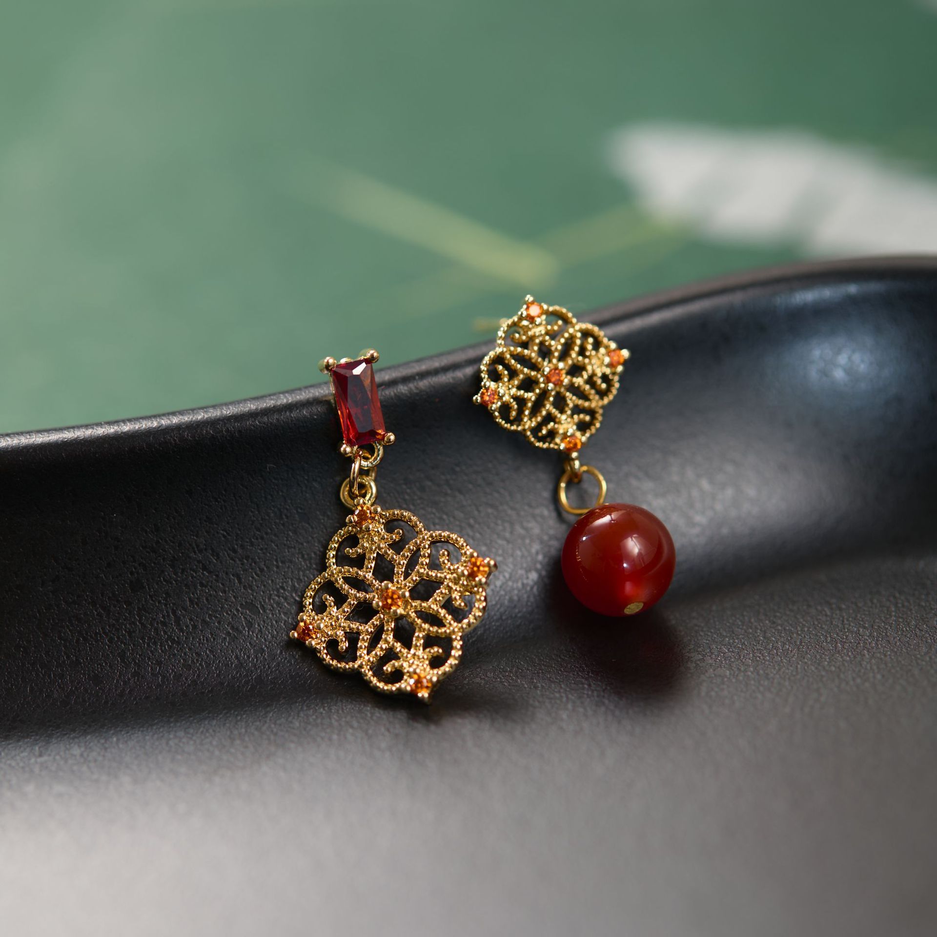 Flower Piece Wedding Earrings Retro New Chinese Style Red Agate Lace Flower Earrings Accessible Luxury High-End New Mosquito Coil Disc for Women