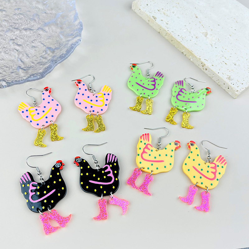 Easter New Creative Rooster Spliced Yak Printed Chicken Strange Printed Hen Earrings for Women Wholesale