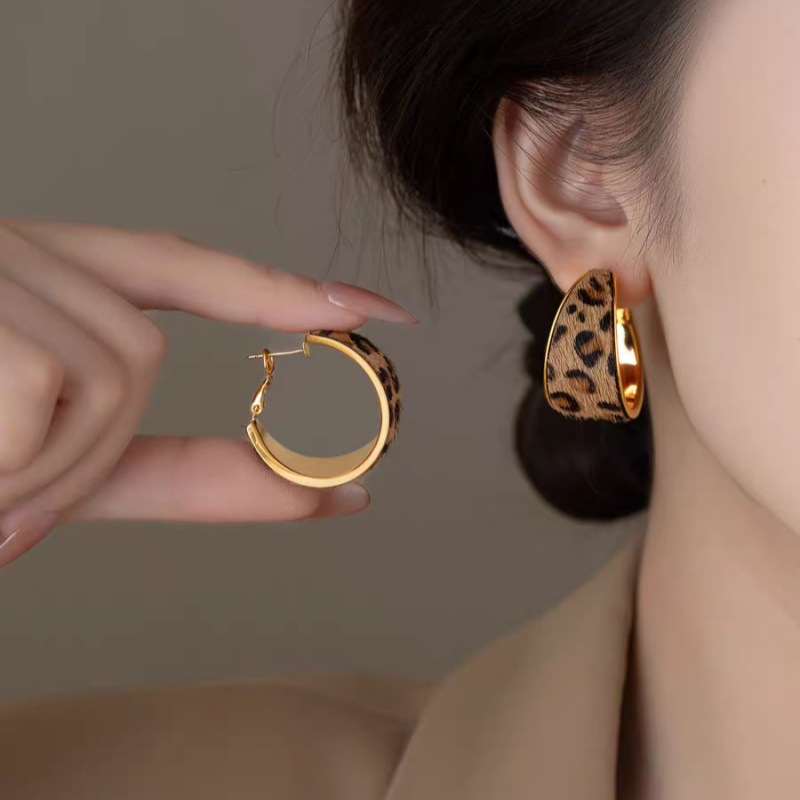 Autumn and Winter Retro Leopard Print Flocked Circle Earrings for Women European and American High-End Geometric Elegant Earrings Personalized Versatile Earrings