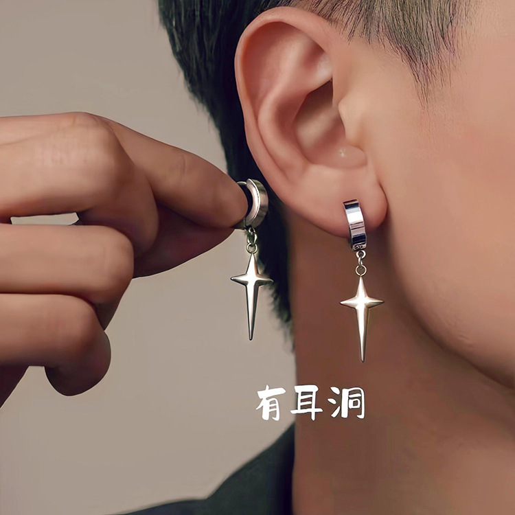 Ins European and American Minimalist Style Personality Cross Star Ear Cuffs Ear Clips for Men and Women Hip-Hop Light Luxury Fashion Non-Pierced Earrings