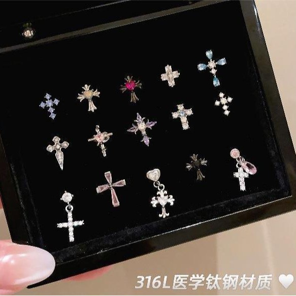 Cross Titanium Steel Earrings for Pierced Ears, High-End, Cool and Handsome Women's Zircon Unique Ear Bone Nails, Cochlear Nails, Small Earrings