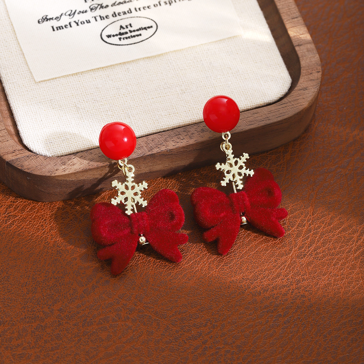 New Year Ankle Red Flocking Bow Snowflake Earrings Light Luxury High-end Sense Ins Style Sweet Elegant Earrings for Women