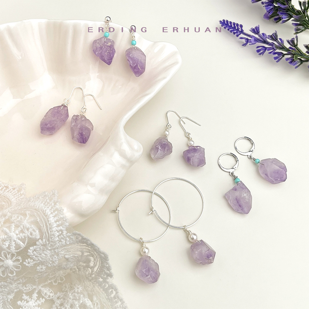 Natural Stone Amethyst Stone Original Design Handmade Jewelry Women's Elegant Lavender Purple Earrings Factory Earrings
