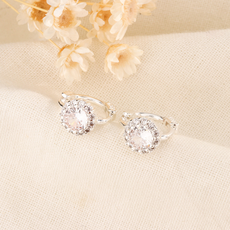 Super Flash Diamond Circle Earrings Female Temperament High-grade Cold Wind Ear Buckle Four Claw Flower Zircon All-match Ear Buckle Ear Ring