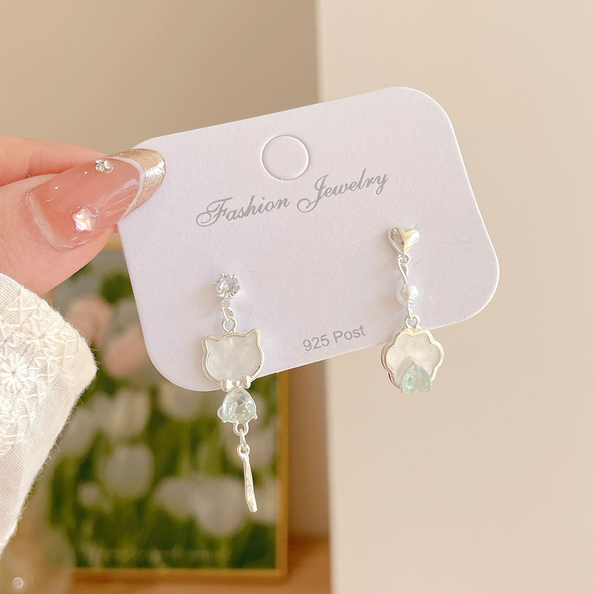 Simple Zircon Cat Earrings Women's Silver Needle Geometry AB Cute Exquisite Tassel Earrings Sweet Niche Earrings