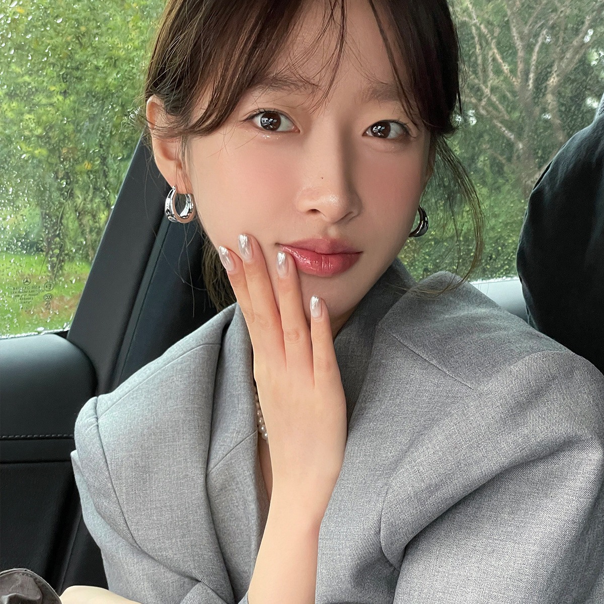 925 Silver Needle Silver Pigment Ring Earrings Women's 2024 New Hot Style Round Face Earrings Light Luxury Feeling Ring Earrings