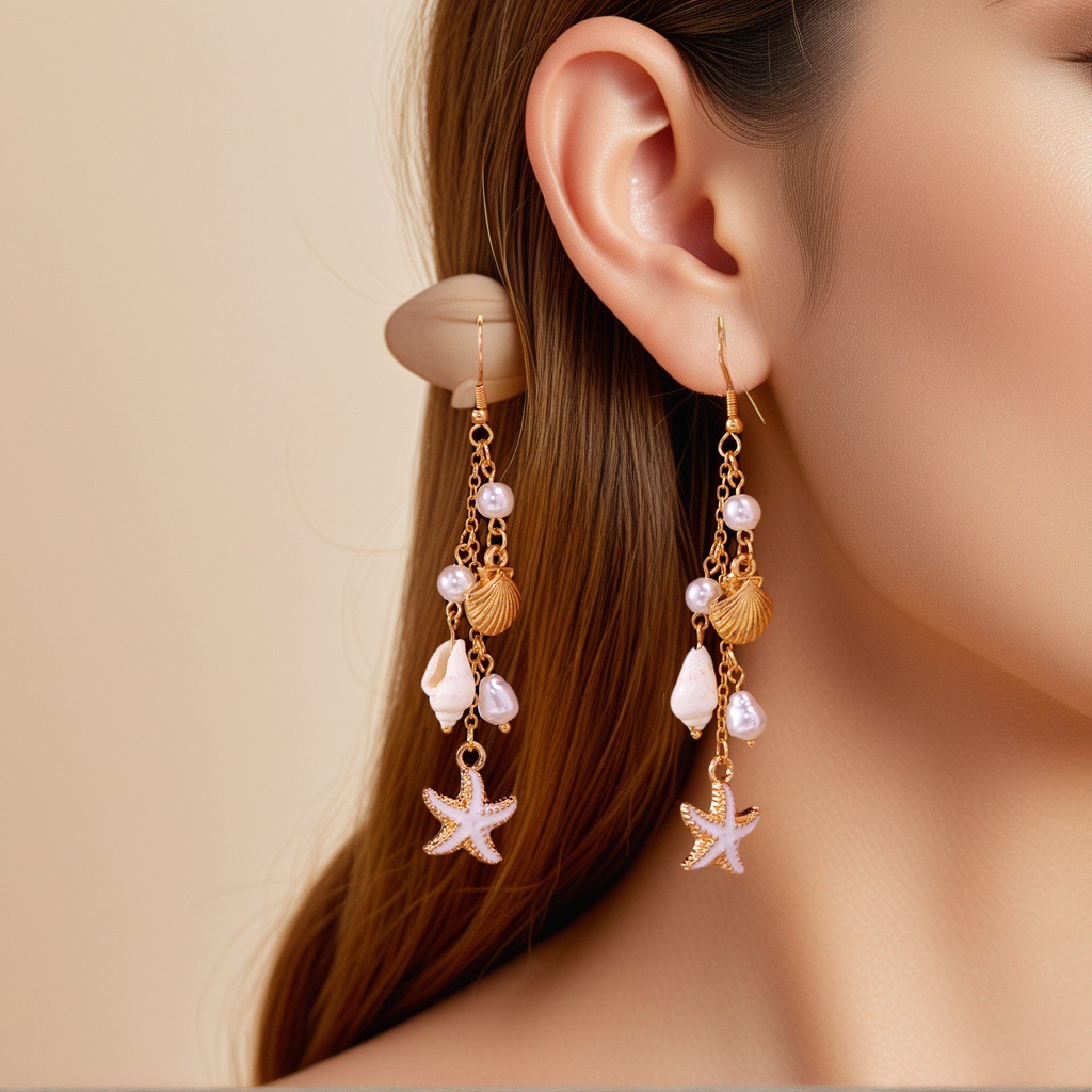 European and American Cross-Border Conch Starfish Earrings Bohemian Y2K Pink Girl Girl Heart Holiday Style Earrings Accessories
