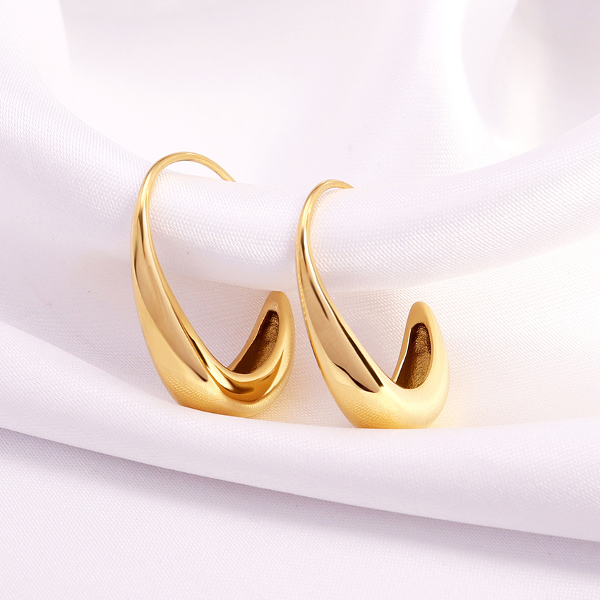 INS Korean Fashion Street Shooting Shape Satchel Curved Earrings 18k Stainless Steel Gold Plated Women's Commuter