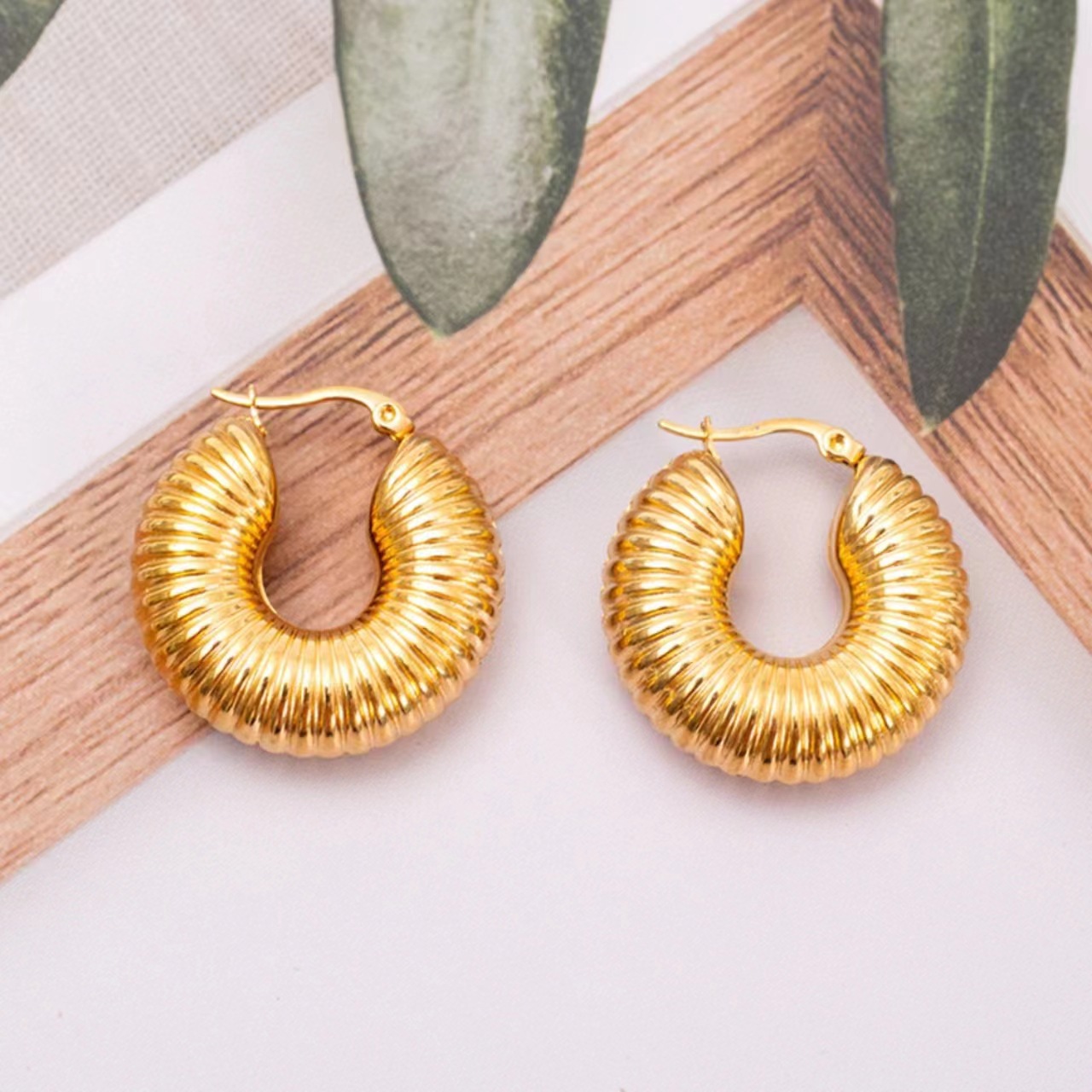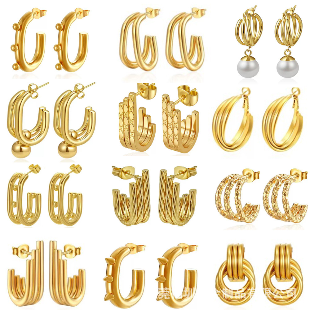 Cross-border European and American high-grade stainless steel hollow earrings women's fashion 18K gold plated not easy to fade factory direct sales
