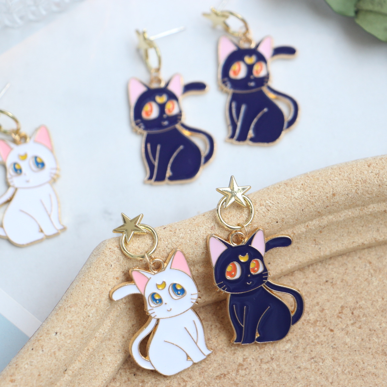 Japanese Cartoon Creative Asymmetric Earrings Silver Needle Cute Girl Heart Star Moon Cat Anime Earrings Women