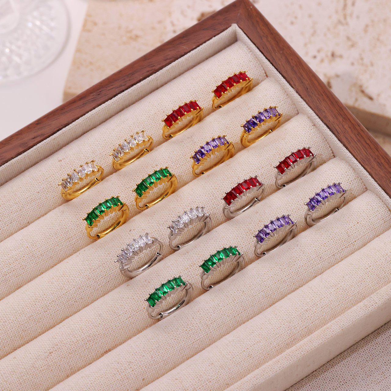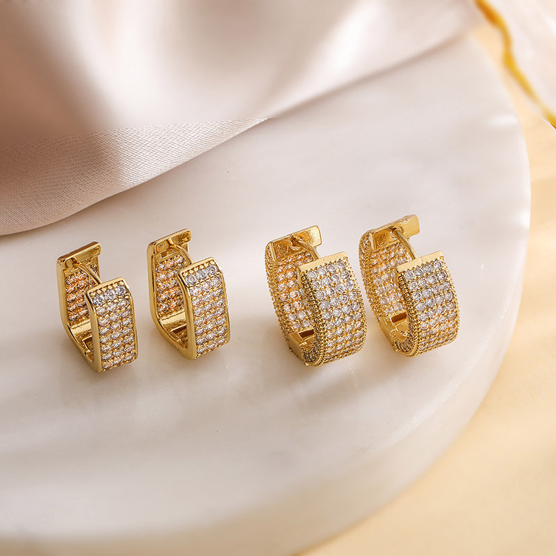 Cross-border Hot-selling Full Diamond Earrings Micro-inlaid Zircon Round Women's Ear Buckle Fashion Light Luxury Square U-shaped Earrings Direct Selling