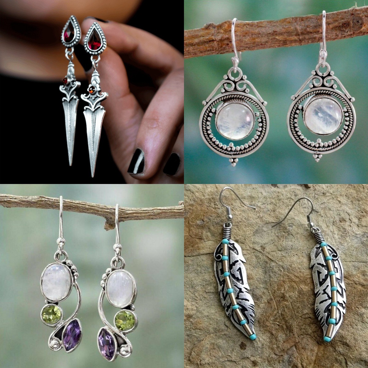 European and American Cross-border Bohemian Inlaid Topaz Elegant Earrings Women's Creative Rotating Water Drop Pear-shaped Earrings Batch