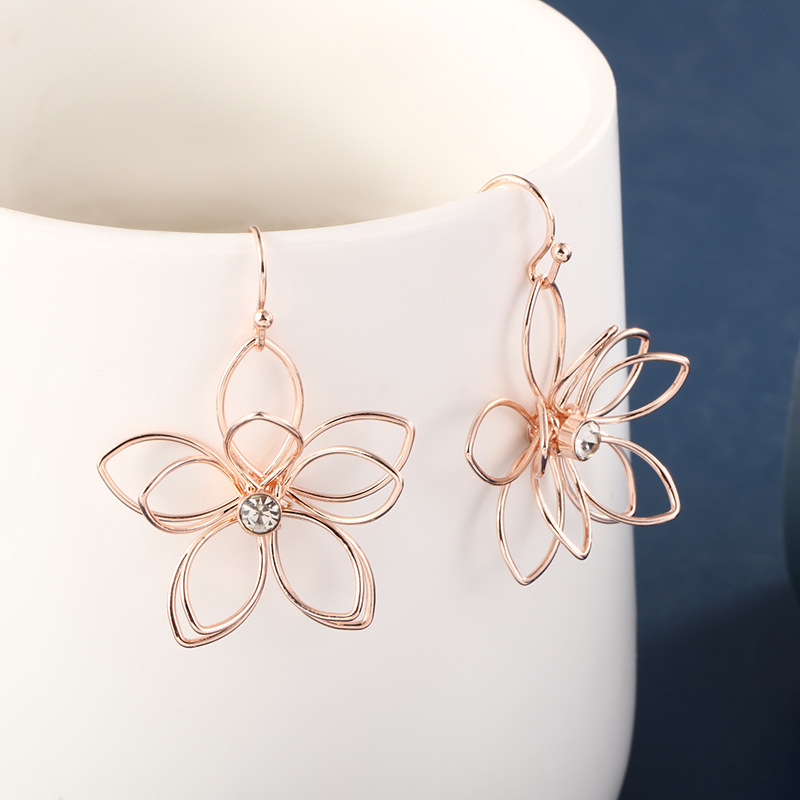 New Year Earrings Simple Hollow Iron Flower Women's Exquisite Distinctive Earrings Design Sense Cold Style Metal Earrings