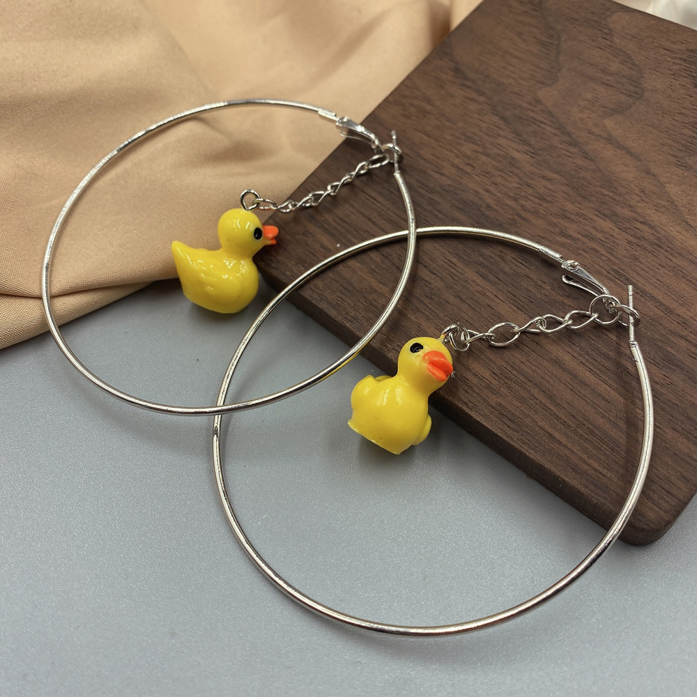Amazon new hot fashion cute cartoon yellow duck earrings girl geometric big circle earrings jewelry
