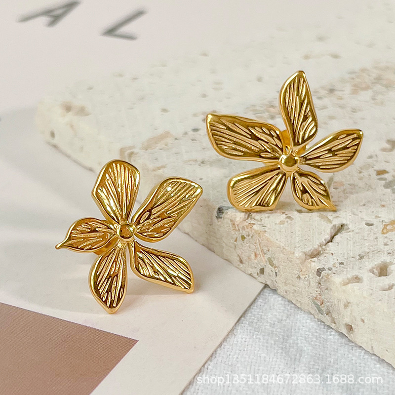 European and American Ins Style Niche Stylish Design Stereo Petal Retro Earrings Elegant Wholesale Girls Gold Earrings