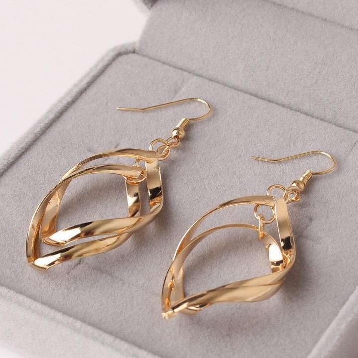 Amazon Explosions Fashion OL Love Drop Ring Earrings Connected Twisted Earrings Double Layer Women's Earrings Wholesale