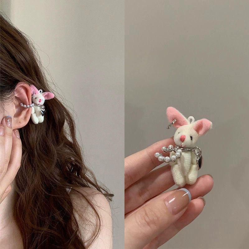 Unique Designer Plush Rabbit Non-Pierced Ear Clip Earrings for Girls, Quirky and Cute Ear Cuffs