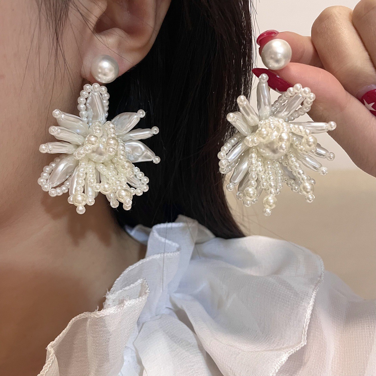 French Retro Light Luxury White Flower Pearl Earrings Sweet Pastoral Fashion Elegant Girly Earrings New Arrival