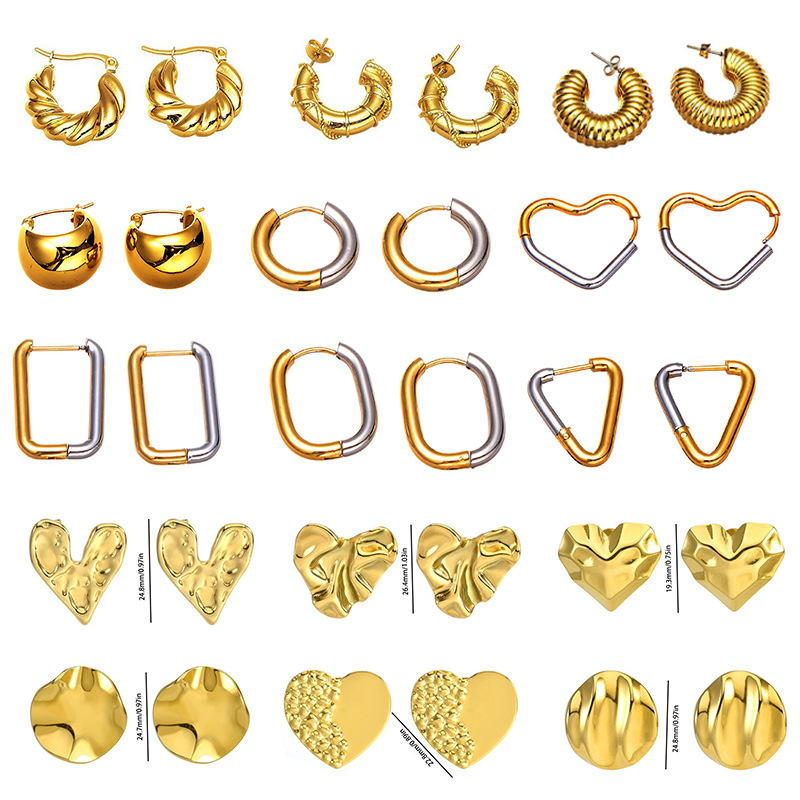 European and American style simple stainless steel earrings earrings women's bright gold fashion temperament socialite earrings design jewelry