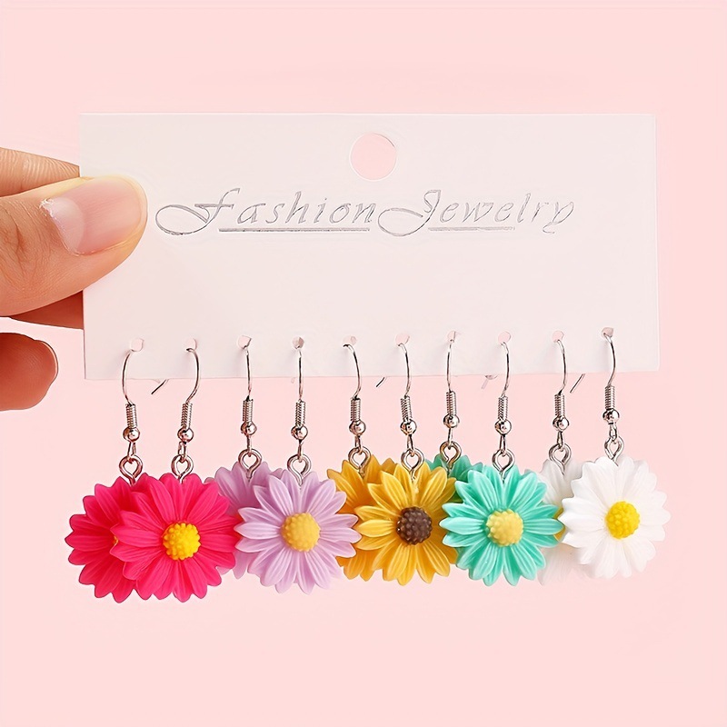 Summer Fresh Colorful Sunflower Flower Resin Girl Sweet Earrings Ear Hook Earrings Wholesale