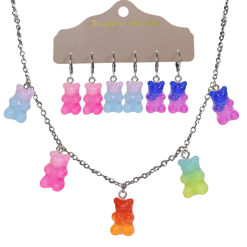 Cross-Border Fashion Versatile Accessories Candy-Colored Bear Necklace Set Cute Girl Earrings Personalized Simple Women's Pendant
