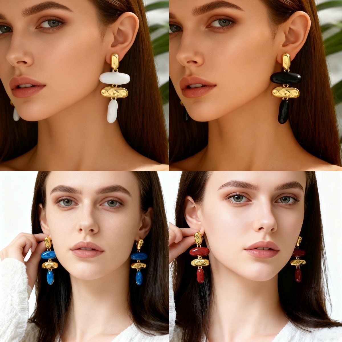Light Luxury Red and Blue Drip Glaze Earrings, Ethnic Style Girls' Earrings, Personalized Trendy Earrings, Light Luxury Design