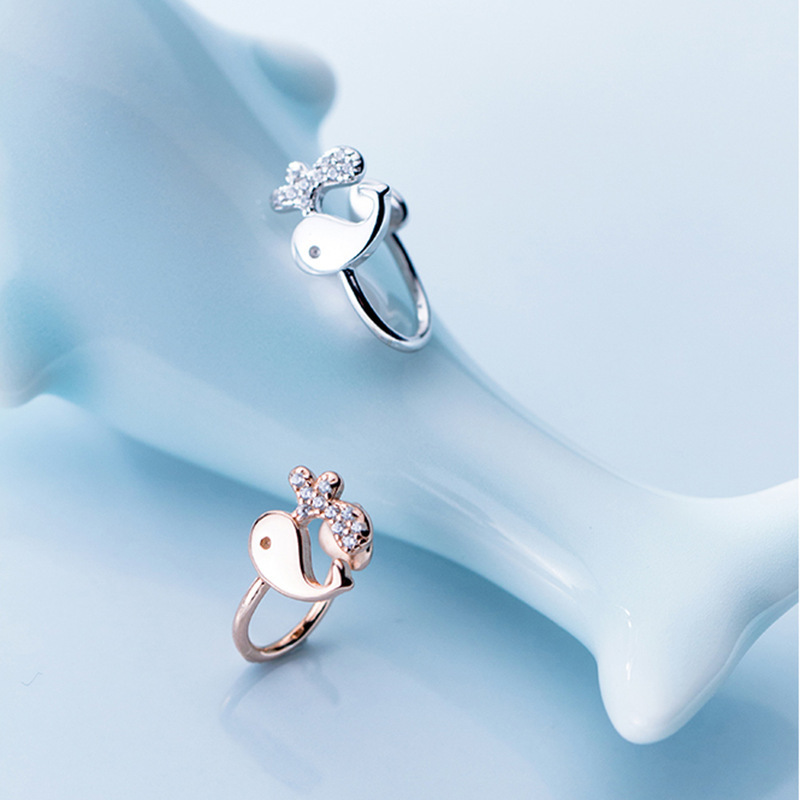 Whale Ear Clip Cute Japanese Earrings without Ear Holes Korean Style Diamond-encrusted Girl's Elegant Small Ear Clip for Students
