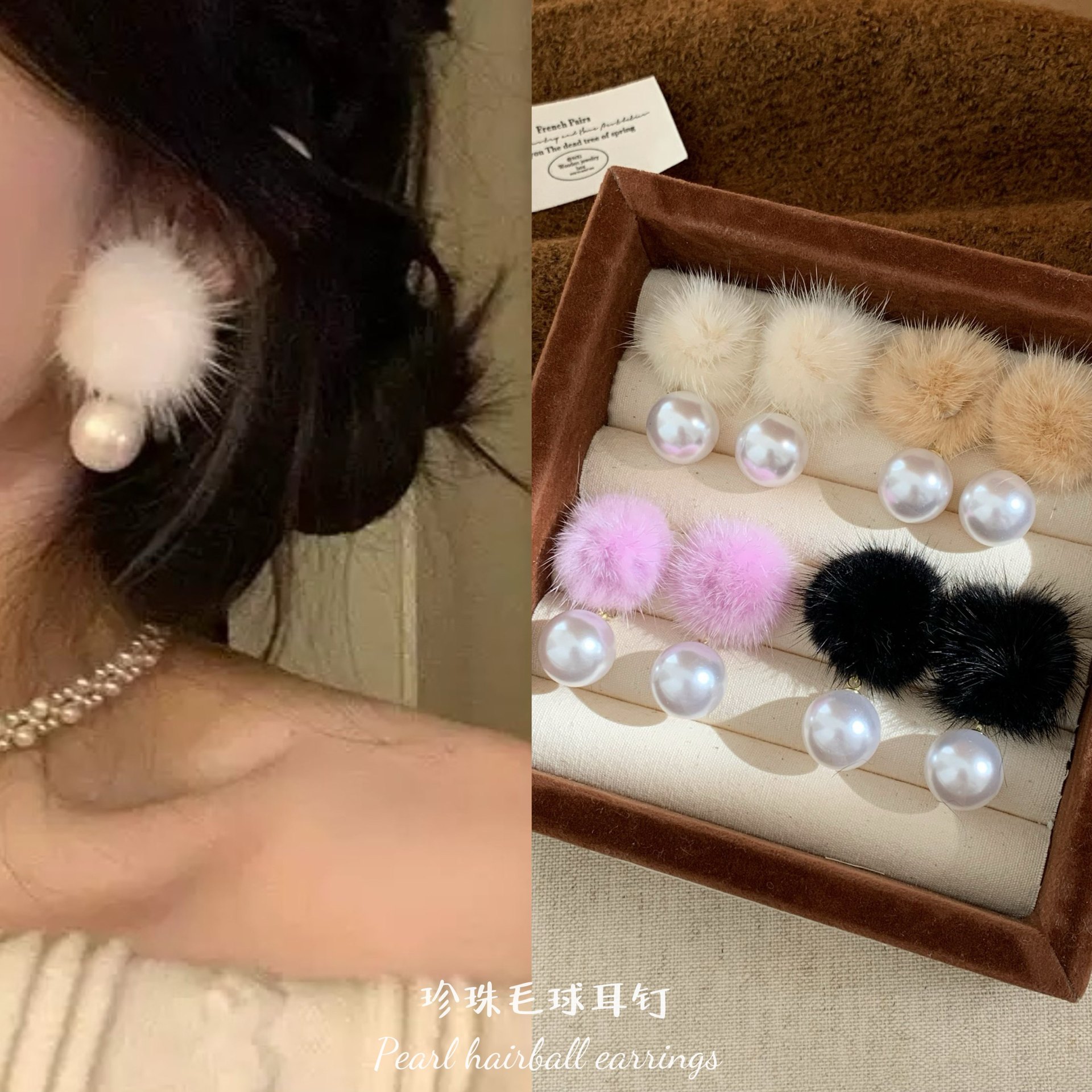 Autumn and Winter Plush Ball Pearl Pendant Earrings for Women with Silver Needles, Accessible Luxury Design, Exquisite and Sweet Girly Heart Earrings