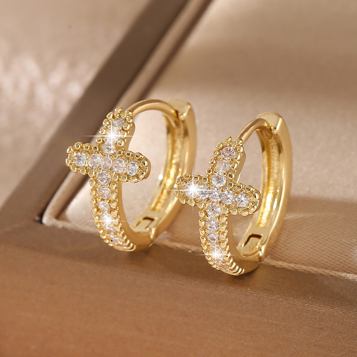 European and American New Style Personality Cross Earrings Classic Zircon Ear Cuffs Cross-Border Fashion Simple Women's Earrings Accessories