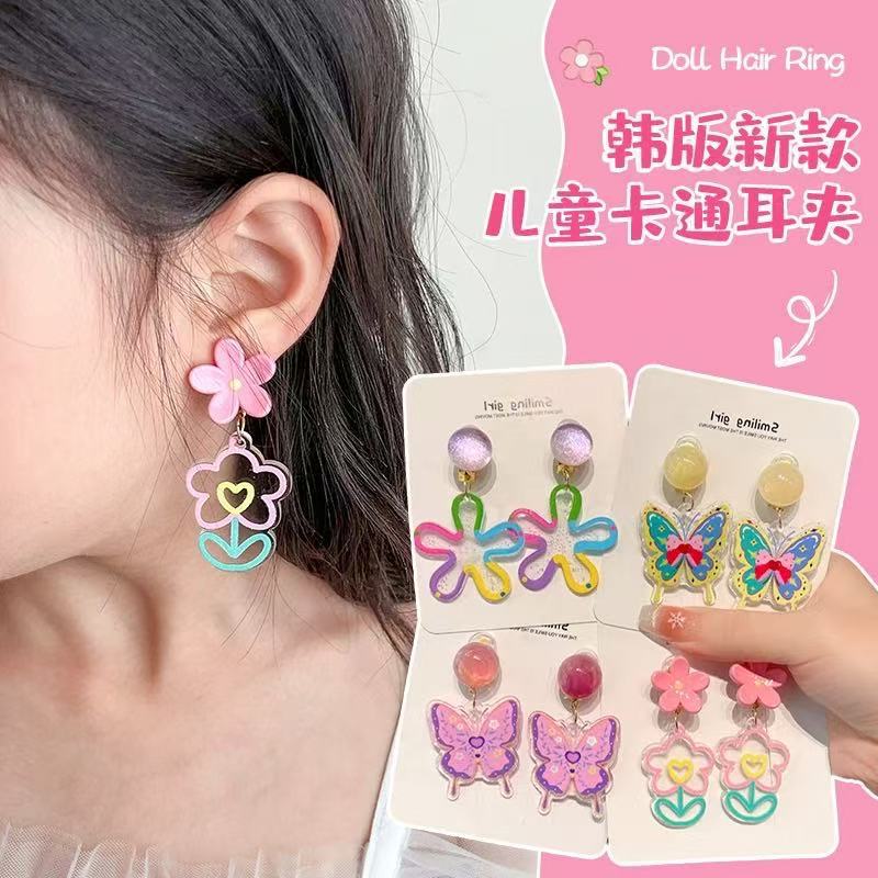 Children's Cute Cartoon Pierced Ear Clips for Little Girls Sweet Candy Color Bow Earrings Girls Earrings Accessories