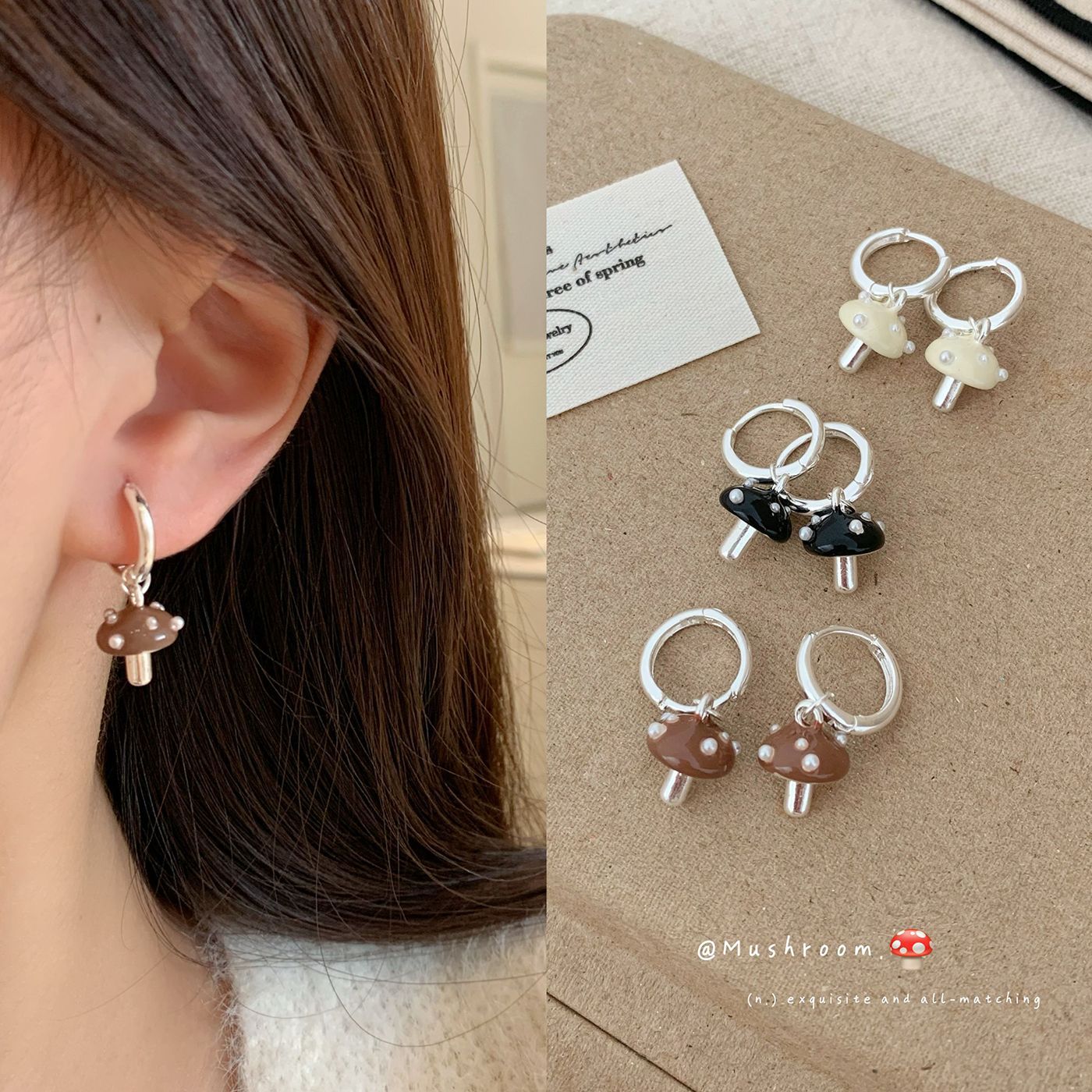 New Oil-Dropping Pearl Polka Dot Mushroom Pendant Earrings for Women Niche Design Exquisite Sweet Girly Heart Earrings