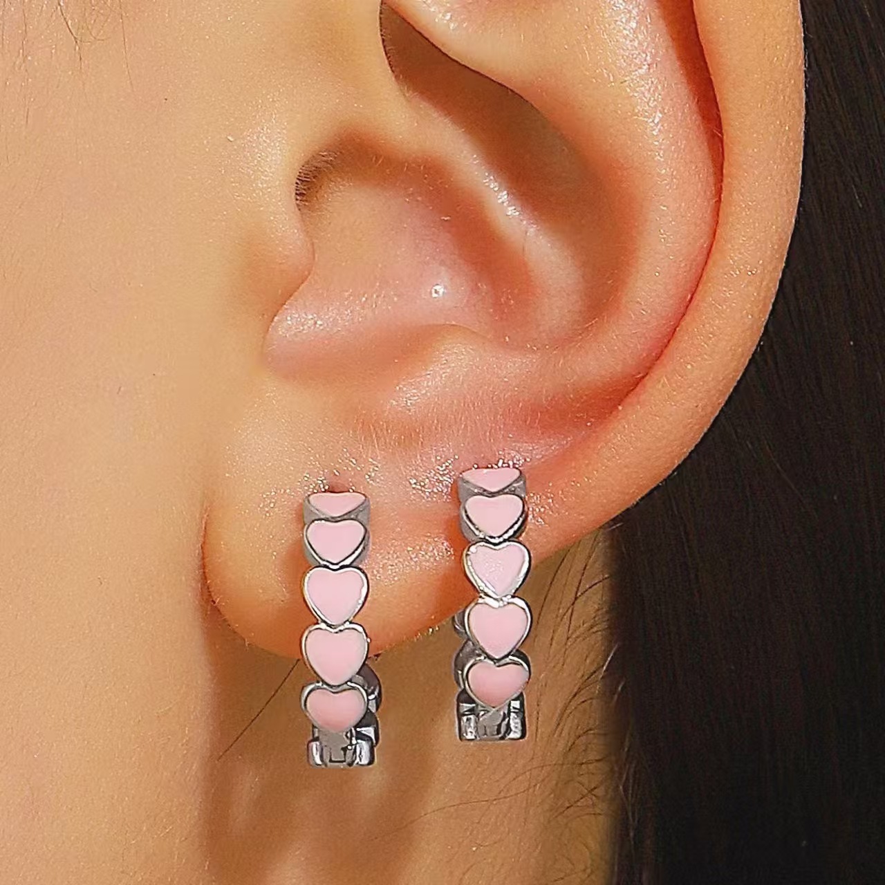 Cross-border Color Oil Dropping Love Earrings Women's Ins Trendy Sweet and Cool Copper Ear Buckle Spring and Summer Simple Girl's Earrings
